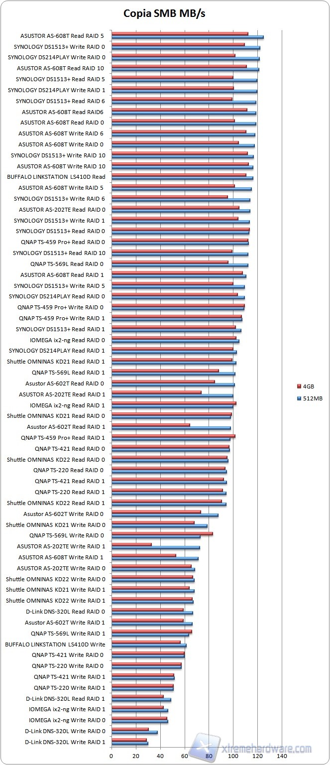 Riportiamo, a differenza dei precedenti articoli, solamente i risultati dei test relativi ai file da 512MB e 4GB in quanto i valori registrati combaciavano per tutte le dimensioni testate.